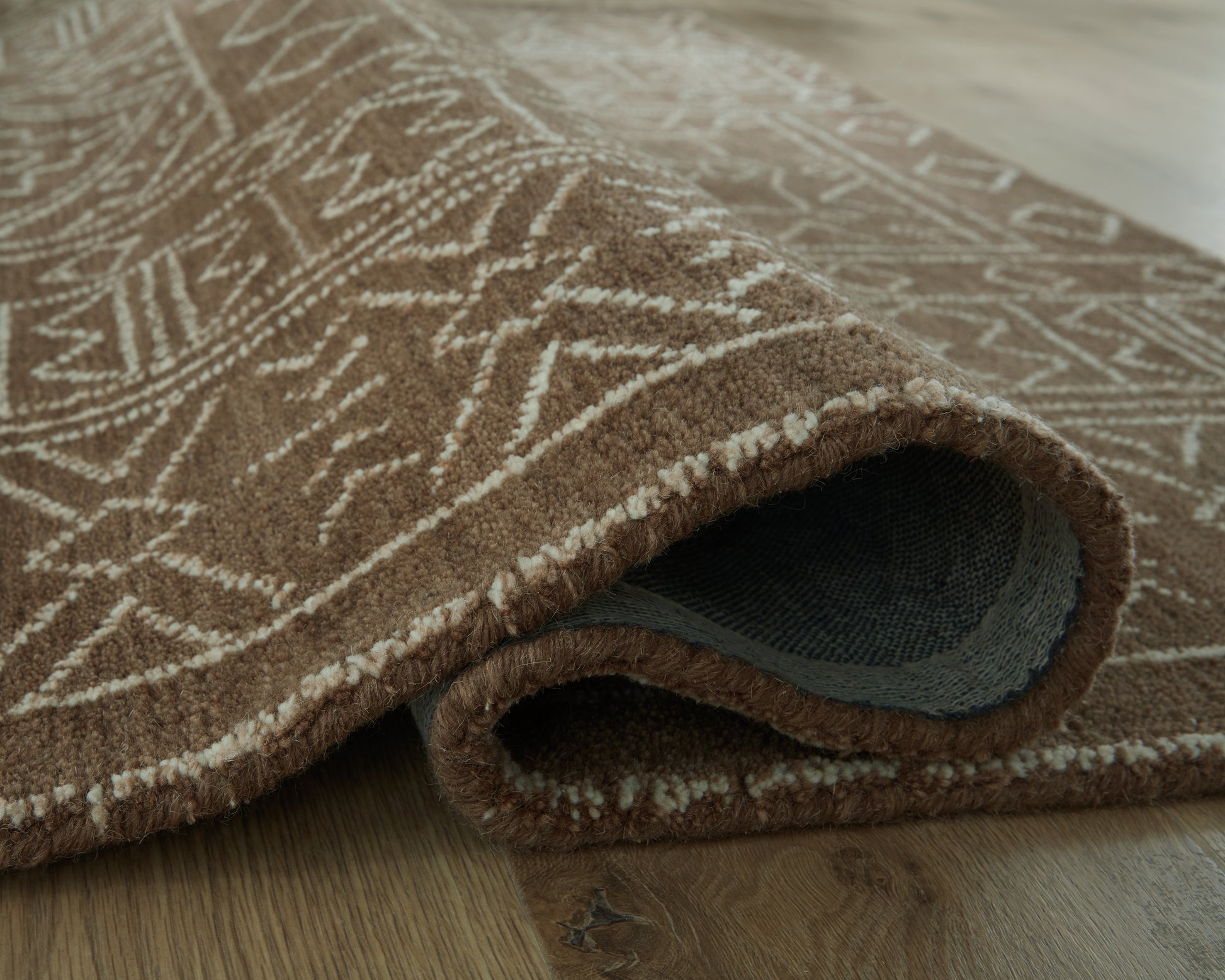 Hand tufted and crafted with a plush wool pile, this area rug is a modern take on a classic design. An Aztec-inspired pattern captures the imagination, while hues of brown and ivory keep the look grounded and upscale. Artfully designed, this rug fits right in with boho or vintage casual aesthetics.