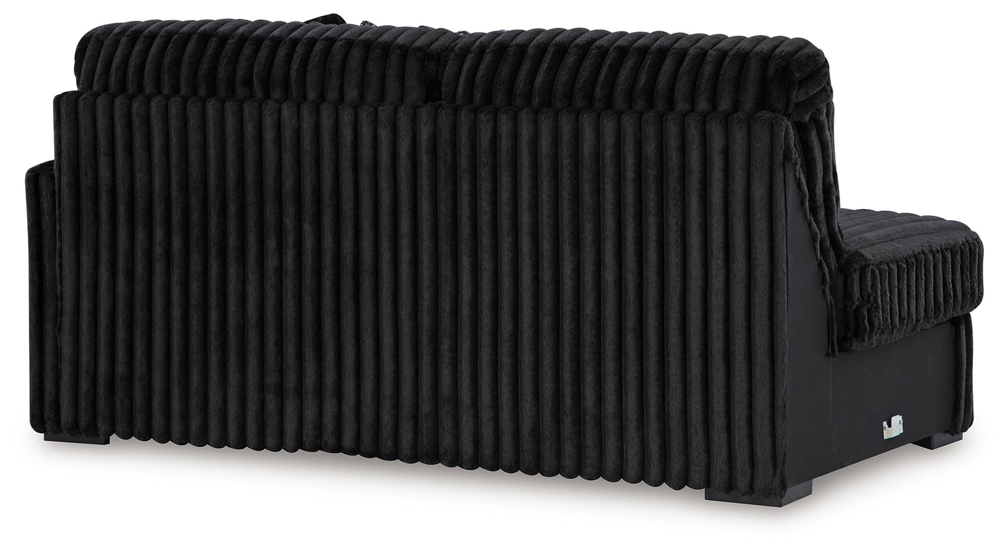 Includes 3 pieces: left-arm facing corner chaise, armless loveseat and right-arm facing sofa,