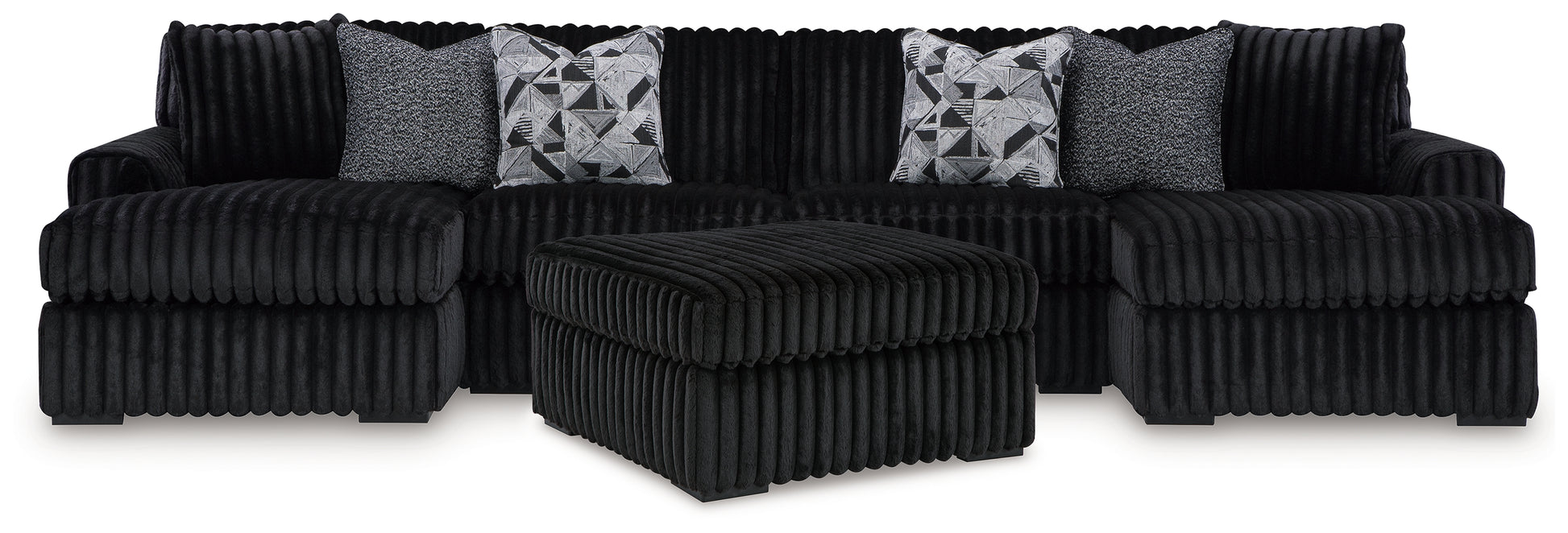 Midnight-Madness 3-Piece Sectional with Double Chaise and Ottoman