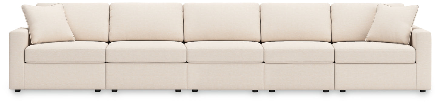 Includes 5 modular pieces: left-arm facing corner chair, 3 armless chairs and right-arm facing corner chair,