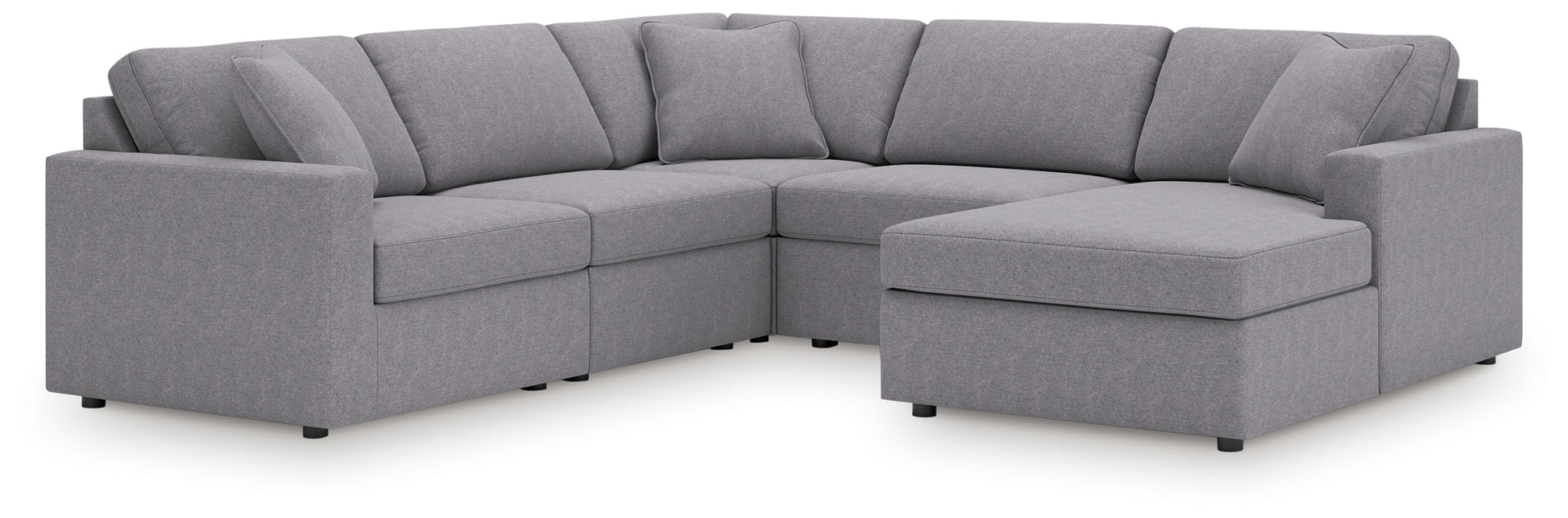 Includes 5 modular pieces: left-arm facing corner chair, 2 armless chairs, wedge and right-arm facing corner chaise,