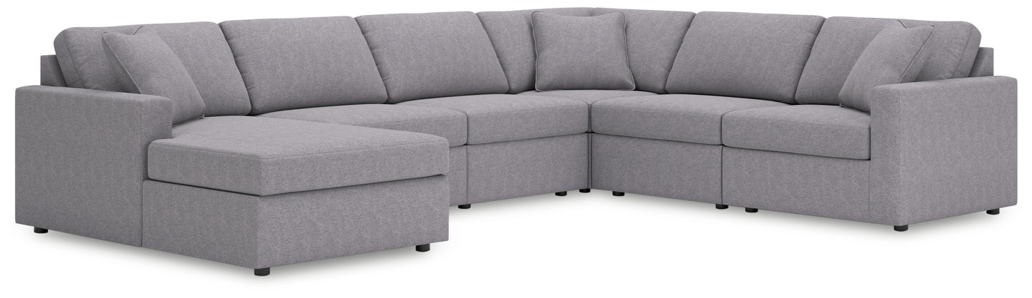 Includes 6 modular pieces: left-arm facing corner chaise, 3 armless chairs, wedge and right-arm facing corner chair,