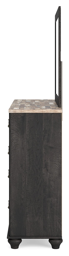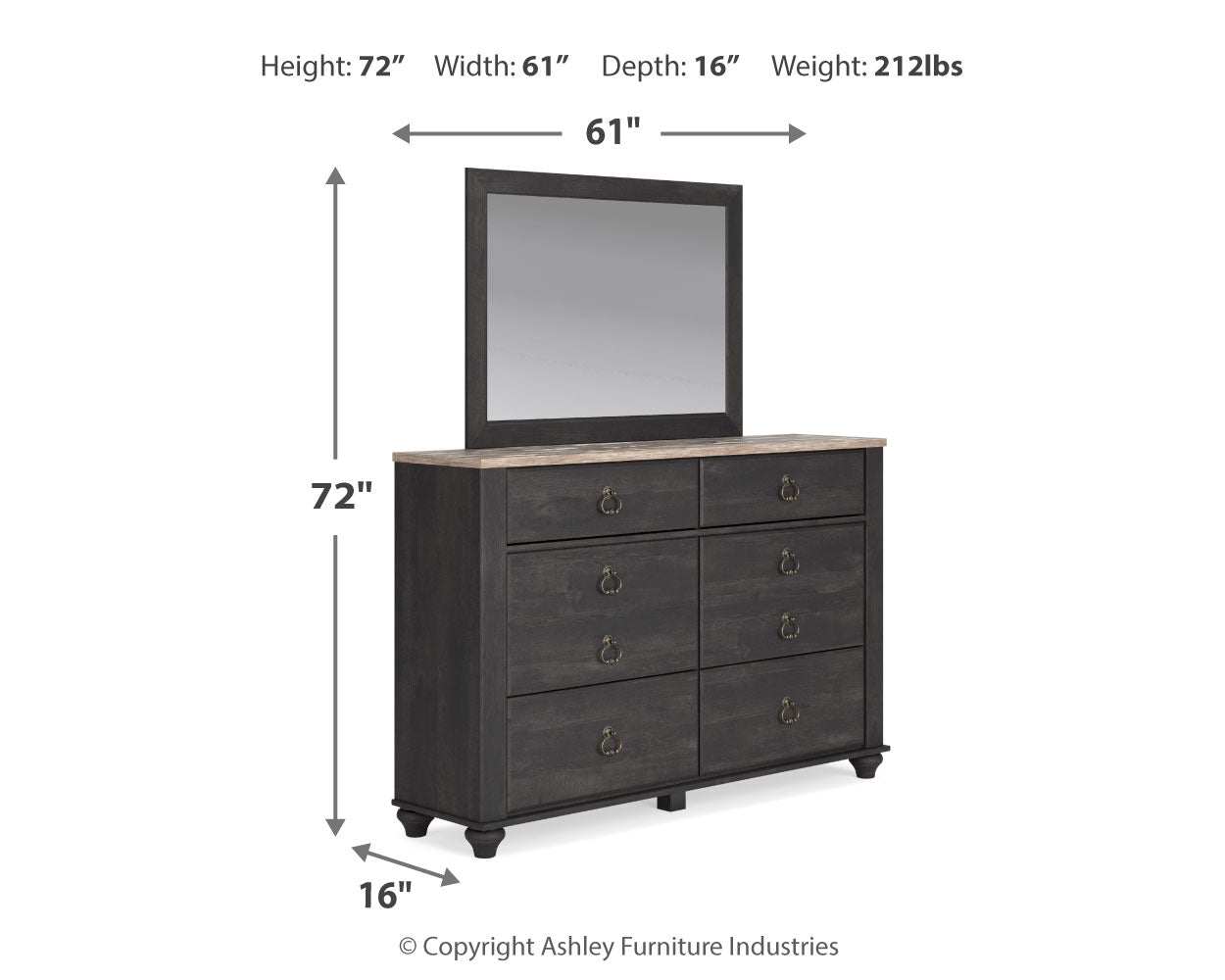 Nanforth King Panel Bed, Dresser, Mirror and Nightstand