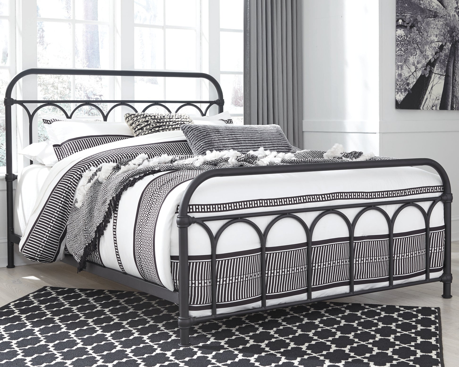 Looking to bring back a sense of bygone charm? Dream it, live it with this queen metal bed. Matte black frame with moulded \"fittings\" brilliantly mimics wrought-iron beds from yesteryear for a look that’s perfect for your modern farmhouse or cottage-quaint escape.