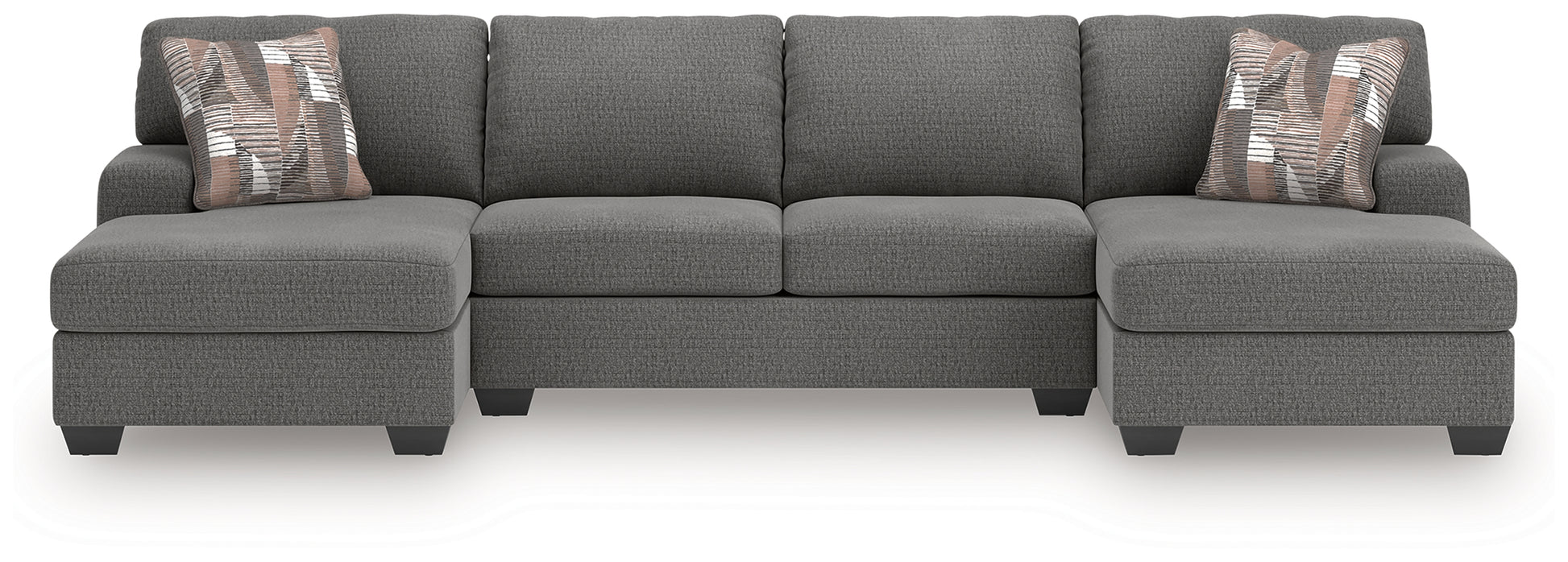 Why choose between classic comfort and modern design? This sectional with double chaise welcomes day-to-day relaxation in style. Its dimensional, menswear-inspired upholstery brings a designer touch to the easygoing silhouette. Gear up for game night or settle in to stream your favorite show—this sectional is an ideal supporting character for your living room hangs.