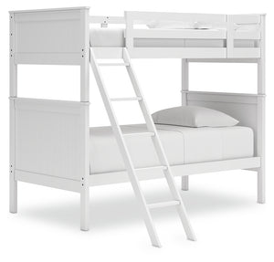 Maximize space and turn your kids\' bedtime into an adventure with this cool twin-over-twin bunk bed. It\'s an effortless addition to any bedroom, with a timeless Shaker style that\'s wonderfully finished in crisp white. Guard rails on the top bunk help everyone get a good night’s rest. And the simplified design means easy assembly. Who doesn’t like that?