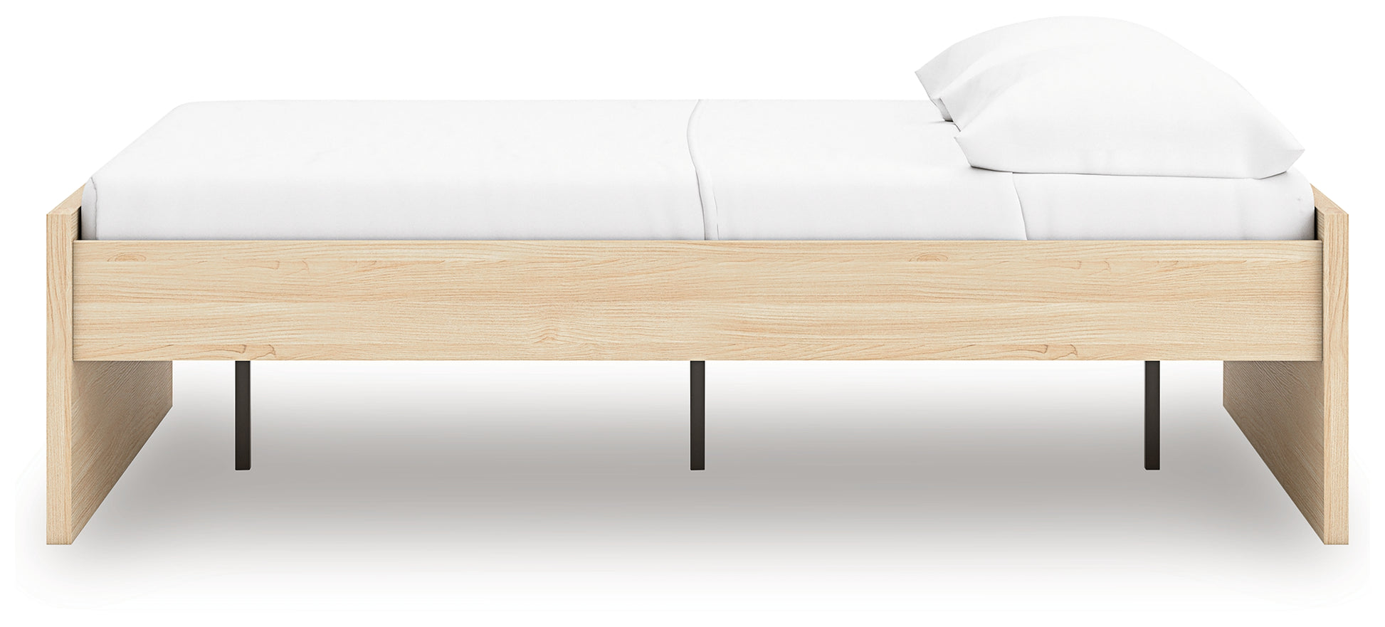 Create the modern bedroom of your dreams. This full platform bed offers a minimal design with maximum style, combining ultra-clean lines and a relaxed natural finish. It doesn\'t need a box spring or foundation, so you can splurge on a mattress that\'s sure to carry you away to a soothing place.