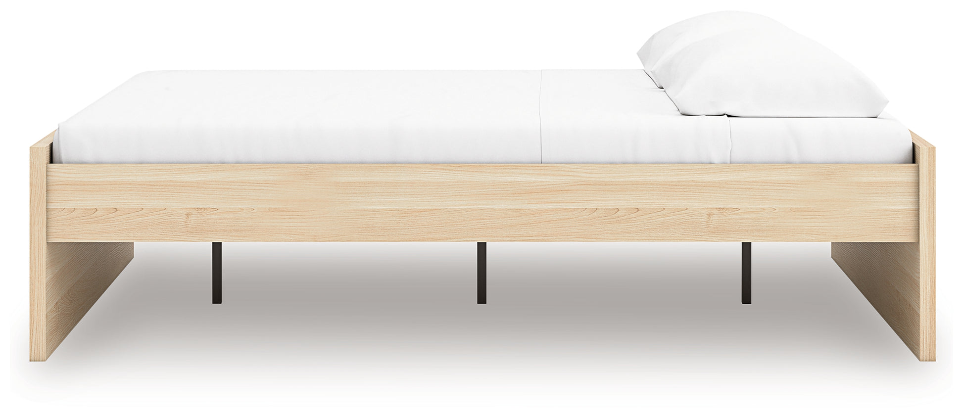 Create the modern bedroom of your dreams. This king platform bed offers a minimal design with maximum style, combining ultra-clean lines and a relaxed natural finish. It doesn\'t need a box spring or foundation, so you can splurge on a mattress that\'s sure to carry you away to a soothing place.