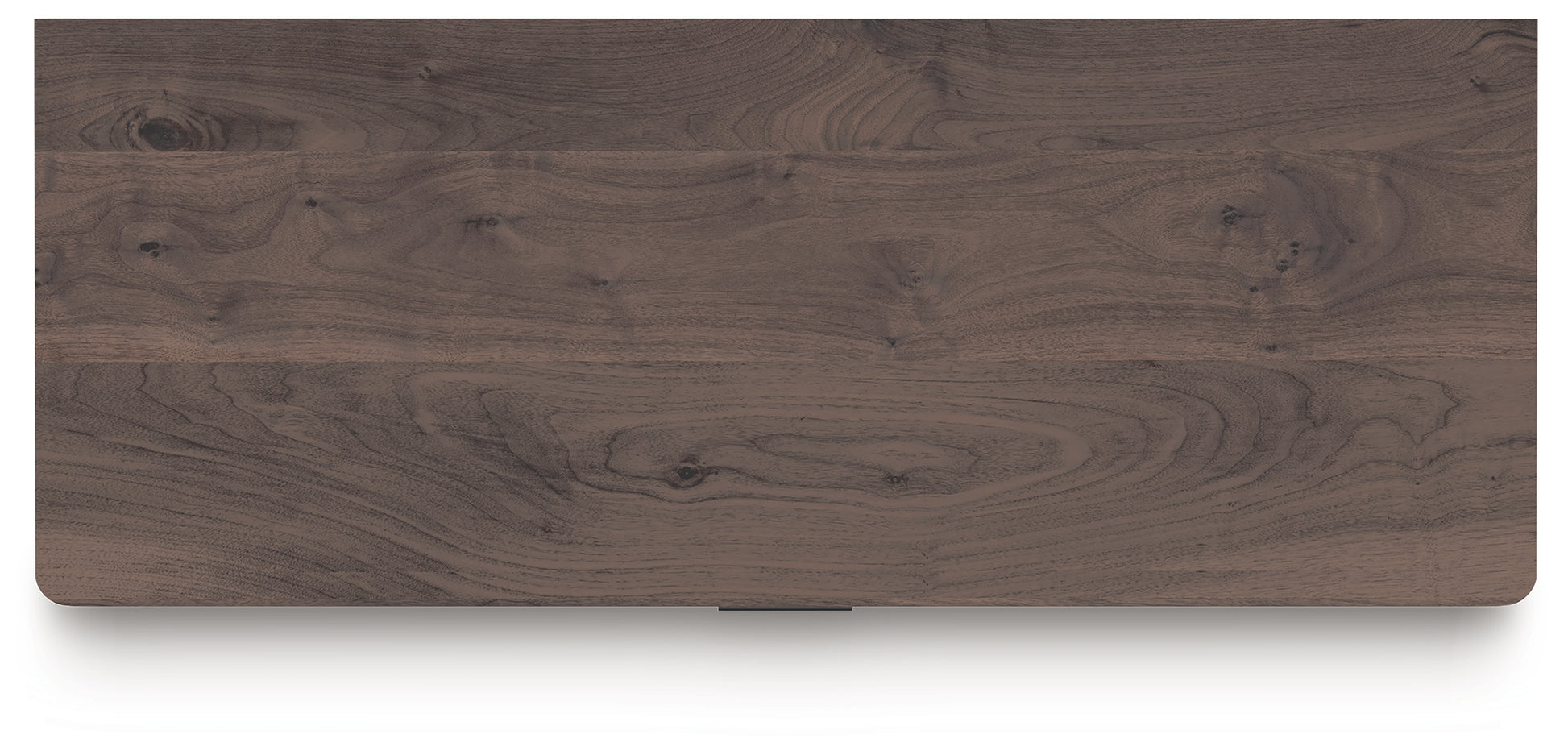 Rich brown finish over replicated walnut wood grain with authentic touch,