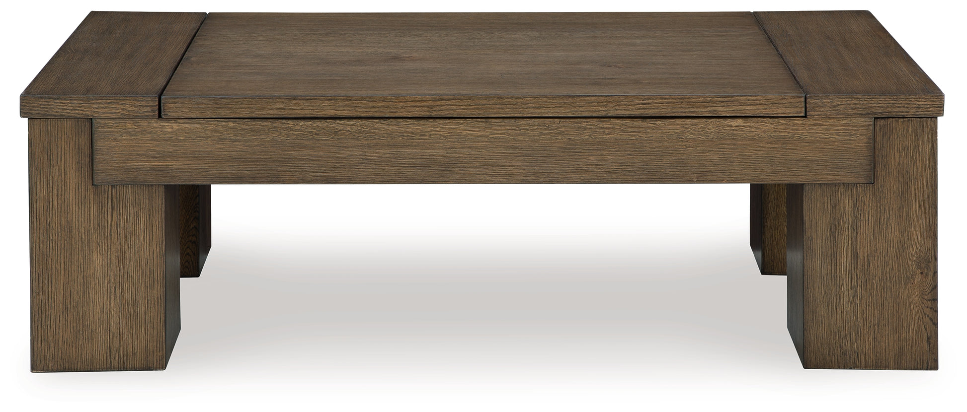 With its sleek silhouette and timeless color, this coffee table appeals to lovers of casual contemporary style. Its architectural geometry and chunky silhouette uniquely blend beauty and practicality. Combining elements of fashion and function, the lift-top design offers a table area for dinner and a movie or working from home on your laptop.