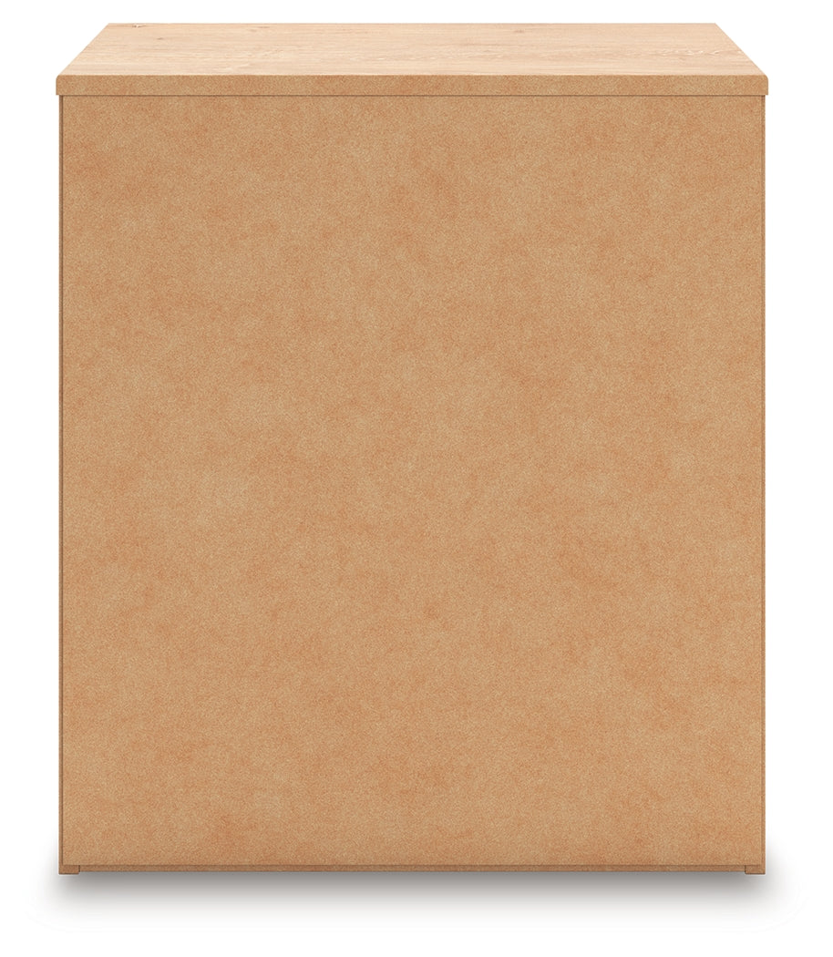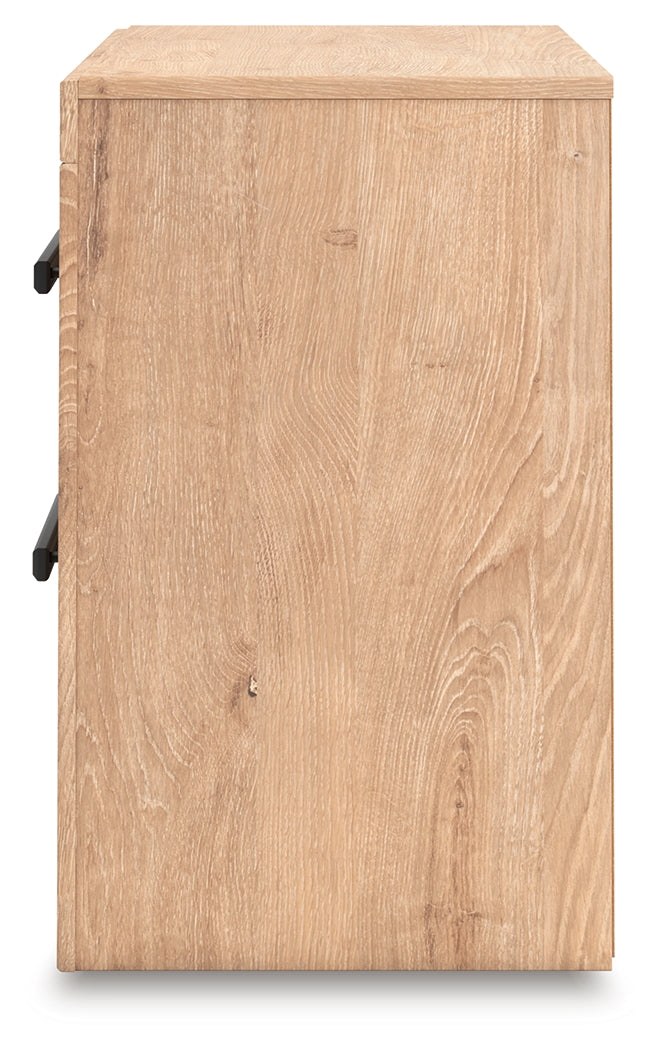 This nightstand brings a touch of modern farmhouse charm to your home. Its light oak finish and clean lines have a fresh, airy feel, effortlessly creating an inviting atmosphere for a restful night’s sleep. Spacious drawers with large black handles provide plenty of storage for all your nighttime essentials.