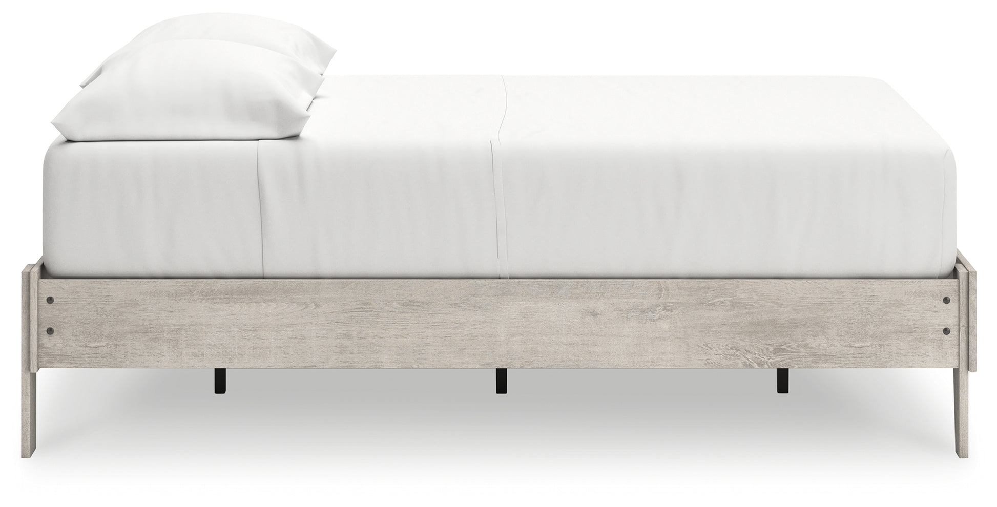Give casual a new meaning with the chic look of this full platform bed. A light gray finish over replicated oak grain keeps it laid-back and inviting, as does its minimalist aesthetic. Talk about a delightfully relaxed vibe in your inner sanctum.