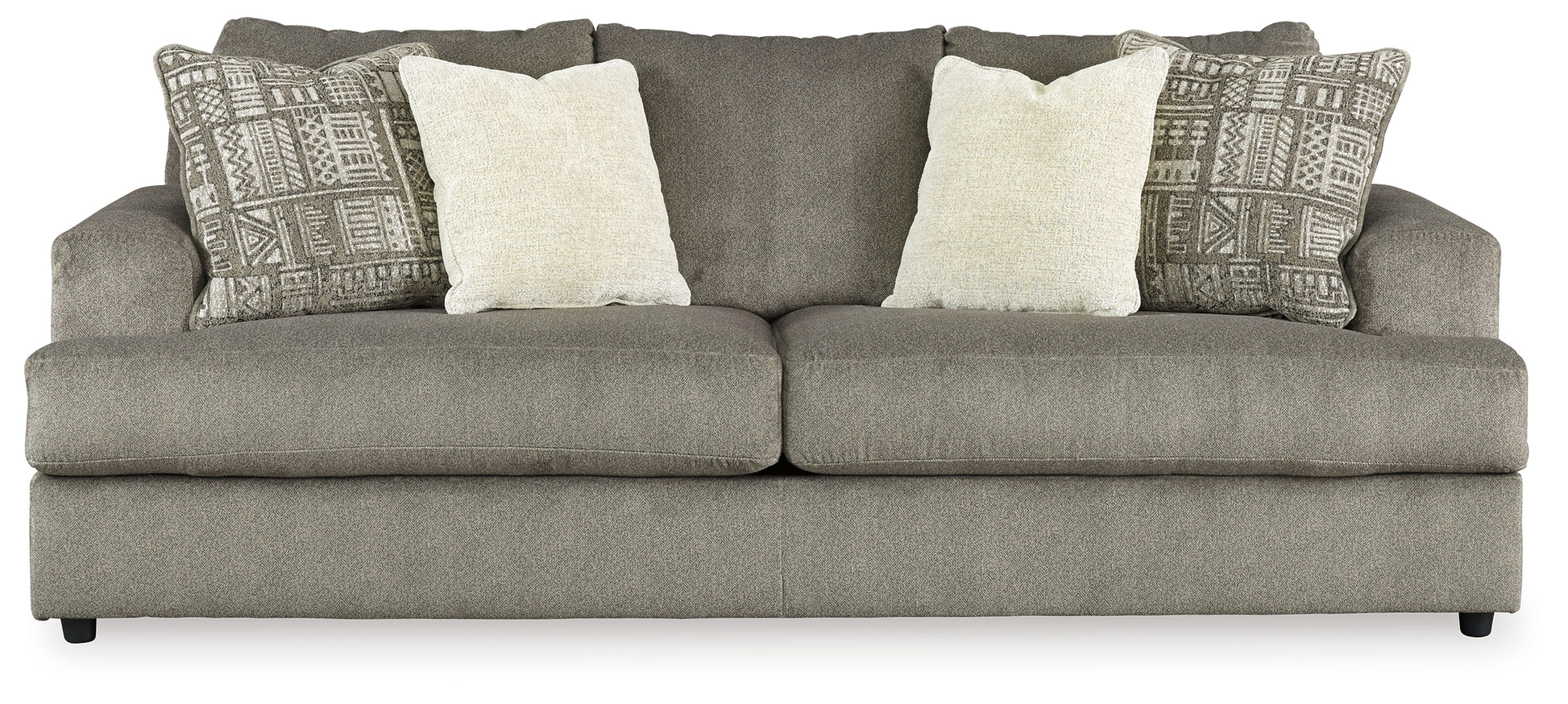 Flaunting a trendsetting silhouette, this sofa puts the contemporary in your contemporary home. Its “three over two” profile eliminates the center seat cushion, giving you elongated plushness and deep seating. And the microfiber fabric satisfies your need for a piece that feels as good as it looks. Soft jacquard chenille throw pillows add a splash of geometric pattern and color contrast.
