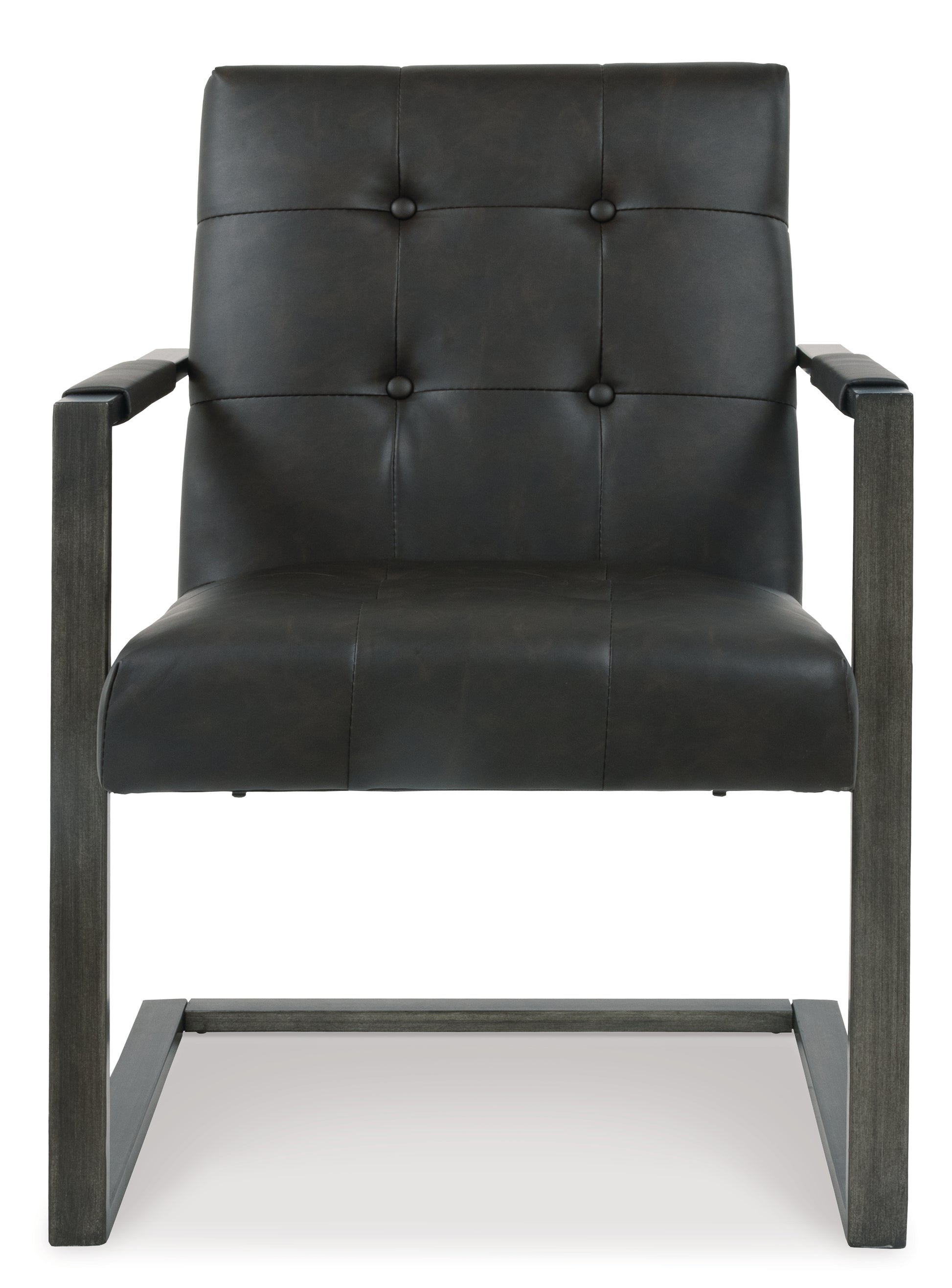 For fans of urban industrial design, this chair steals the show. Its metal C-frame in a blackened gunmetal finish is sleek, sculptural and ultra modern. Crafted for looks and comfort, the tufted box seat, wrapped in a “weathered” faux leather upholstery, is loaded with retro chic flair. Whether paired with Starmore’s home office desk or dining room table, it’s a feast for the eyes.