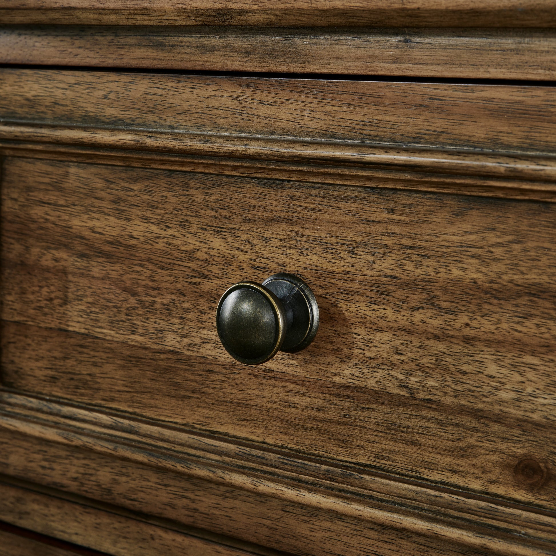 Traditional style doesn’t have to be stuffy. It can feel warm, inviting and beautifully in the moment. Case in point: this dining server. It\'s ready to stand in as an entertainment center, entryway storage or a console table, with a profiled top and glass door cabinets giving it an allure all its own. Equally special is the rich brown finish, which exudes a mood of timeless charm. How\'s that for relaxed refinement?