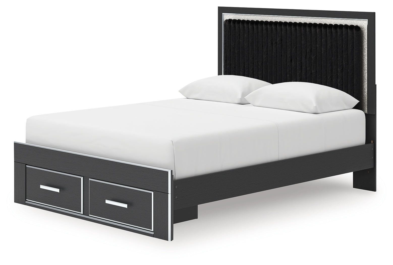 Zuraleus Queen Upholstered Panel Platform Storage Bed, Dresser and Mirror